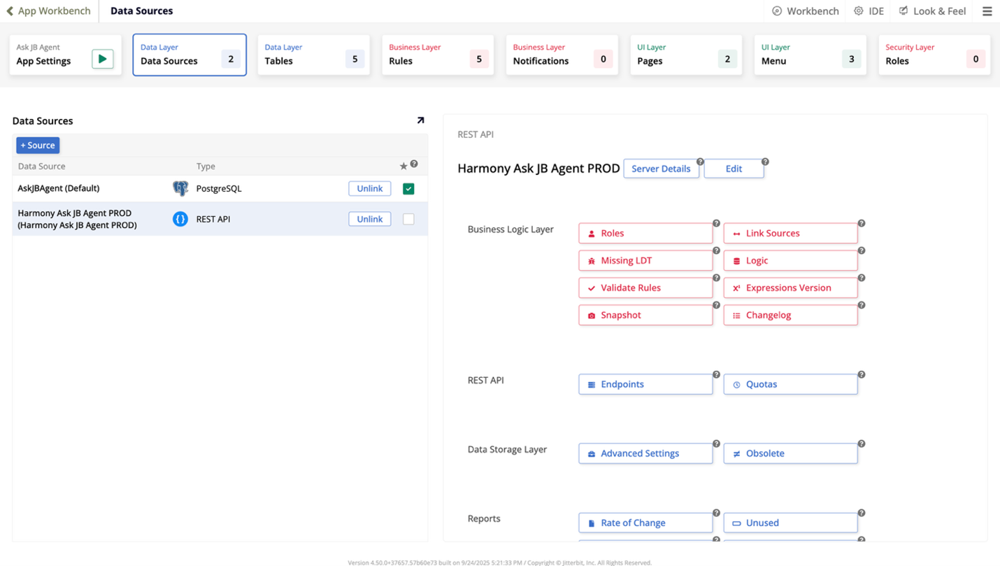 - Go to Action Drawer > App Workbench and open the Data Layer > Data Sources tab.