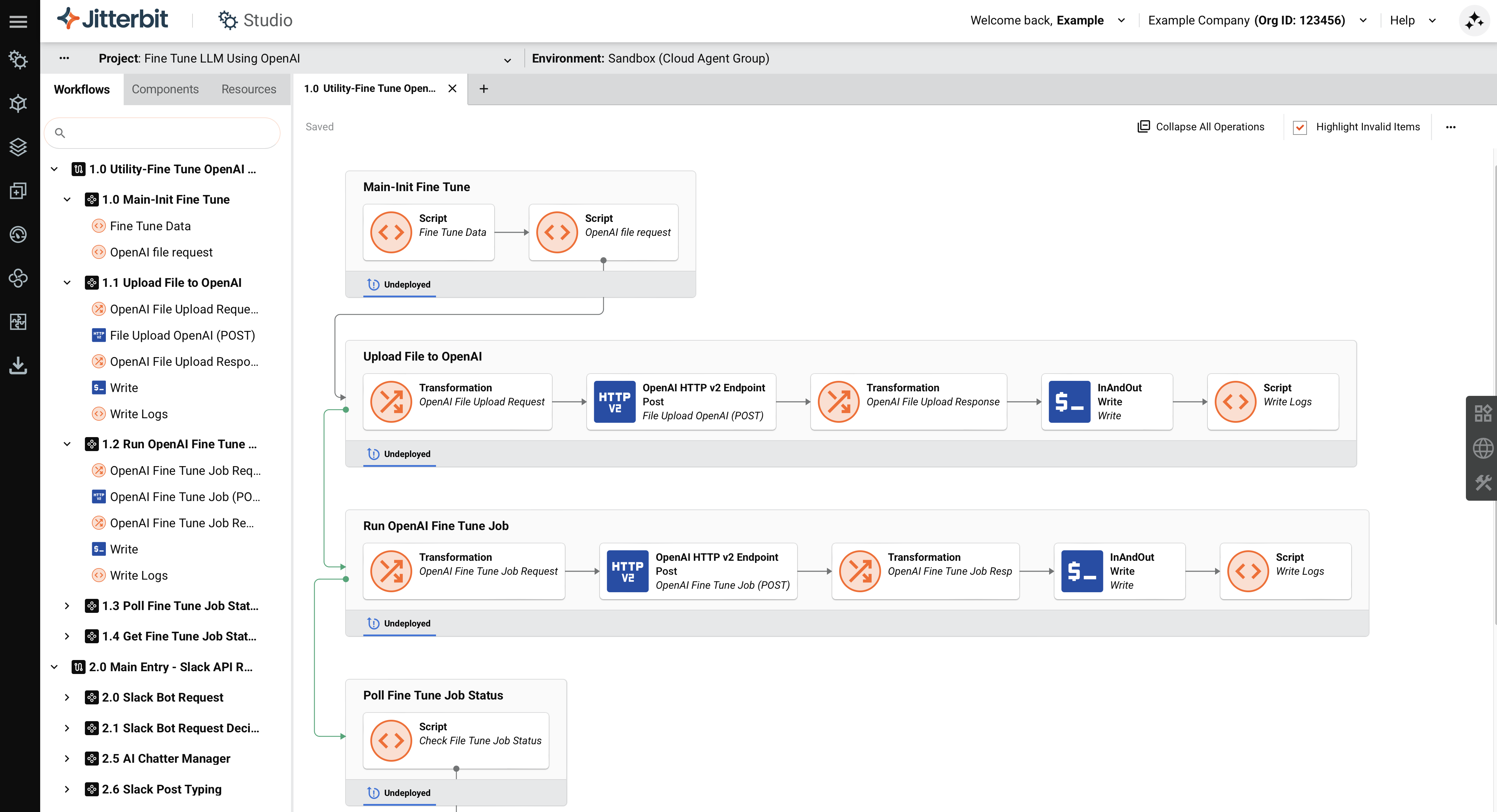 For learning purposes, reference the OpenAI Fine-Tuned Agent provided through Jitterbit Marketplace for an implementation of this guide.