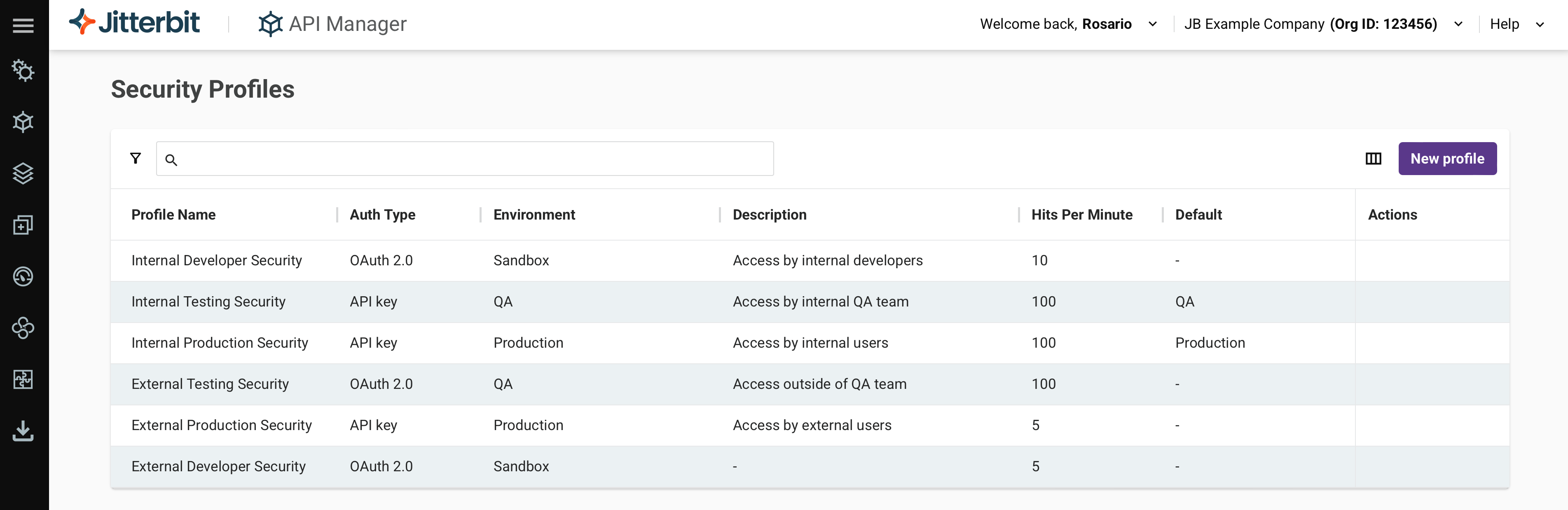 Hits per minute: The maximum number of API requests allowed per minute using this profile, if configured.