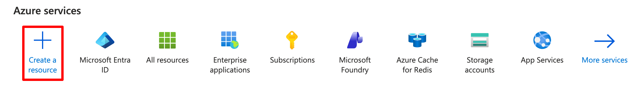 2. Click the Create a resource button to add a new resource.