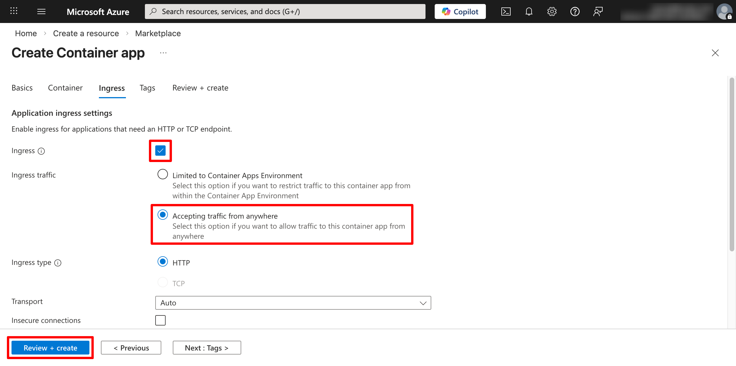 Then, click Next: Ingress > to be taken to the next tab in the resource creation wizard.