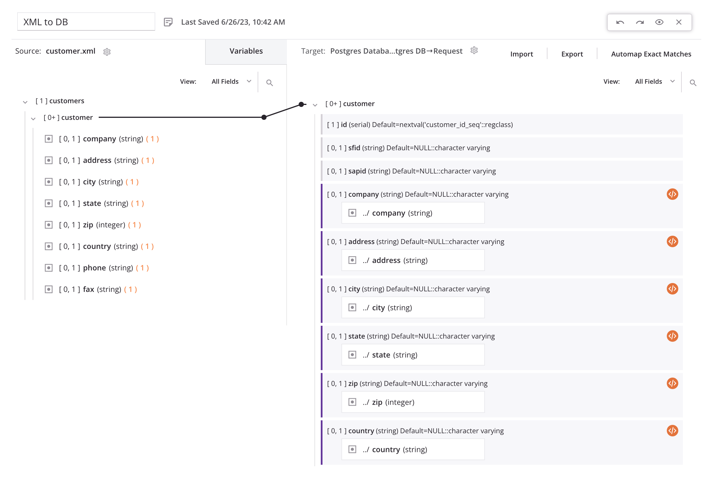customerQuellknoten zumcustomerZielknoten und wählen Sie Automap. -