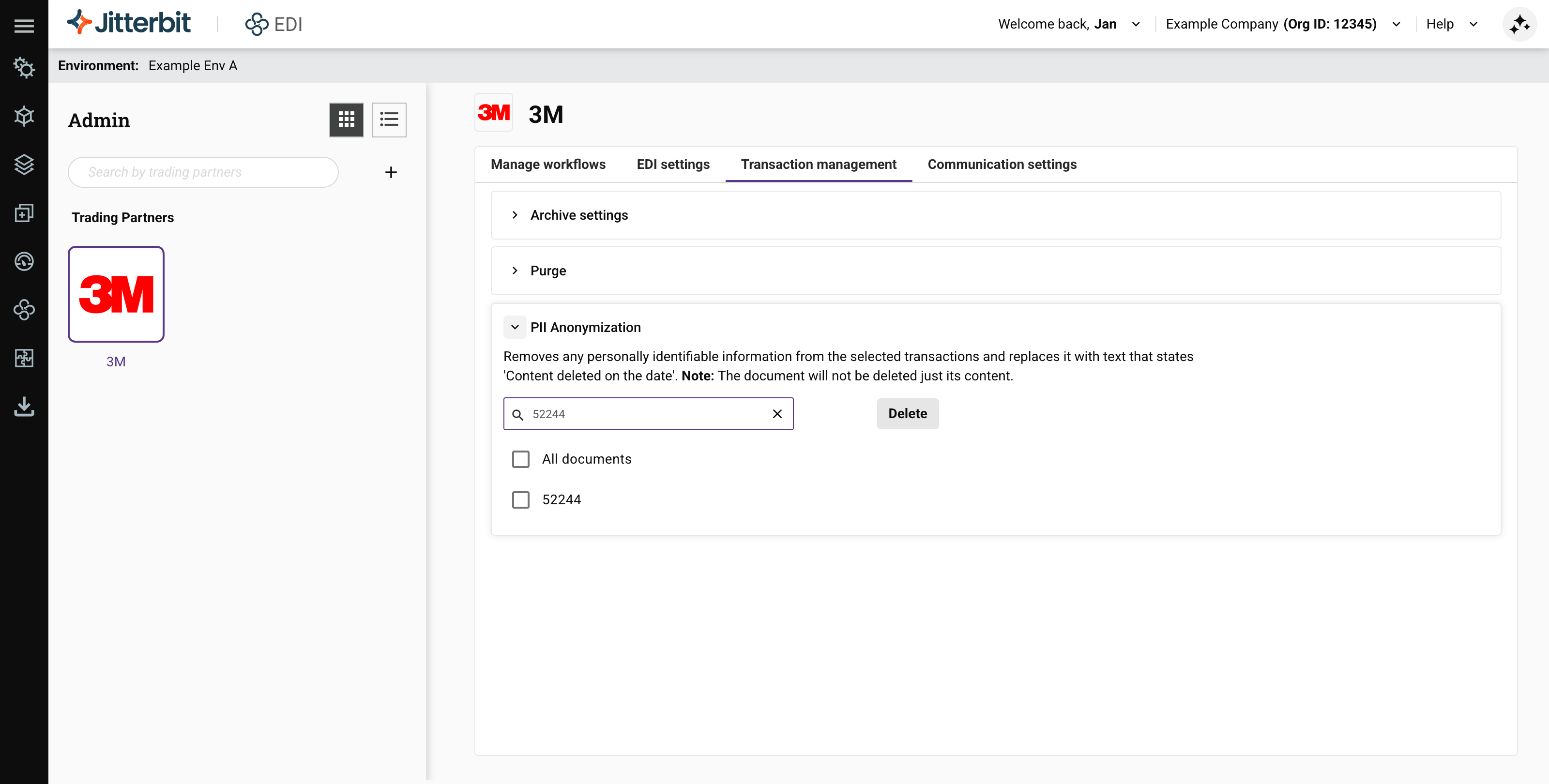 Transaction management in Jitterbit EDI